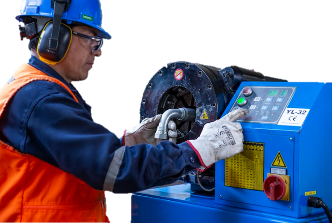 Maquinaria: Tenemos máquinas prensadoras para ensamblar mangueras y las motosoldadoras.
